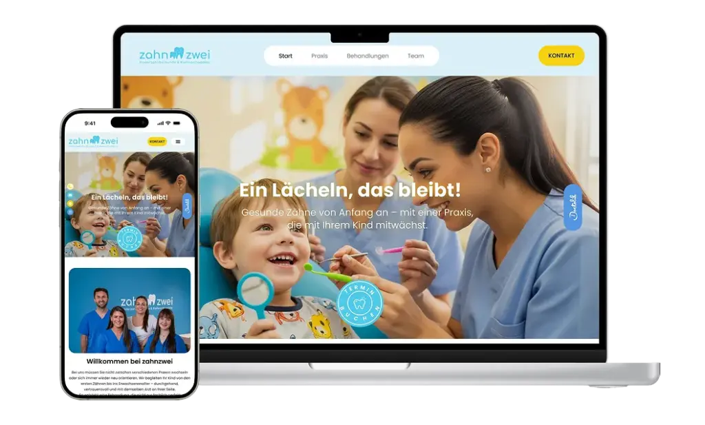 Wir sorgen dafür, dass Ihre Praxis angezeigt wird, wenn Patienten in ihrer Region nach einem Zahnarzt suchen — auf Google und darüber hinaus. Ihre Website enthält die richtigen Inhalte und technischen Einstellungen, damit Menschen Sie finden, Ihnen vertrauen und einen Termin buchen können.