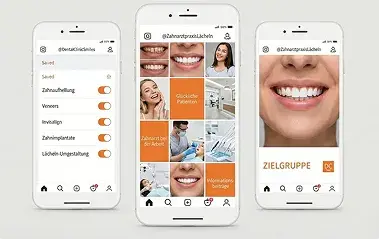 Strategische Planung, Erstellung und Betreuung von Social-Media-Inhalten für einen professionellen und konsistenten Praxisauftritt.